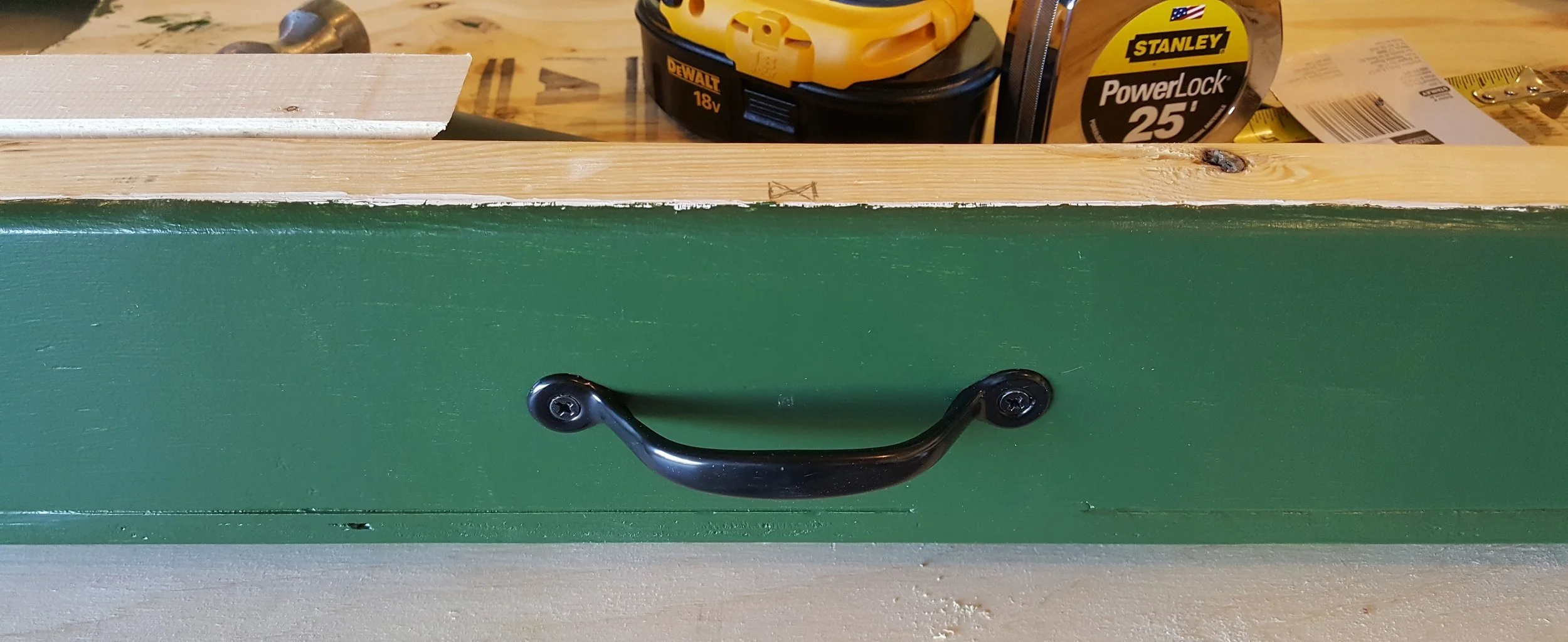 In between coats of paint I decided to make a case for the bags. Being on a farm, I was worried that mice would eventually figure out what the bags were filled with and destroy them. Glued and brad nailed the box together then added a top with a couple of hinges.